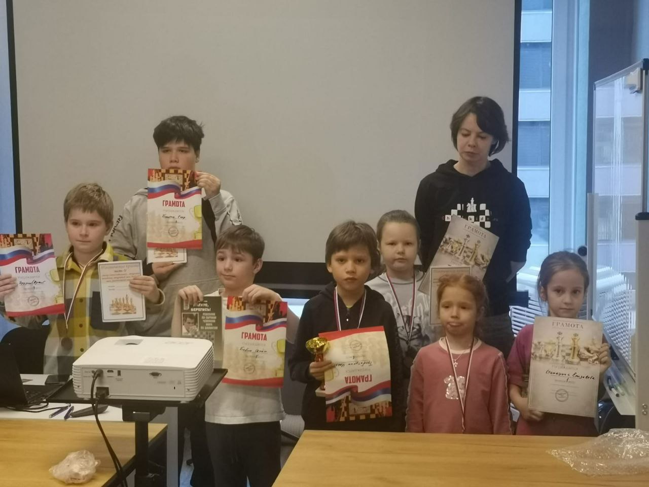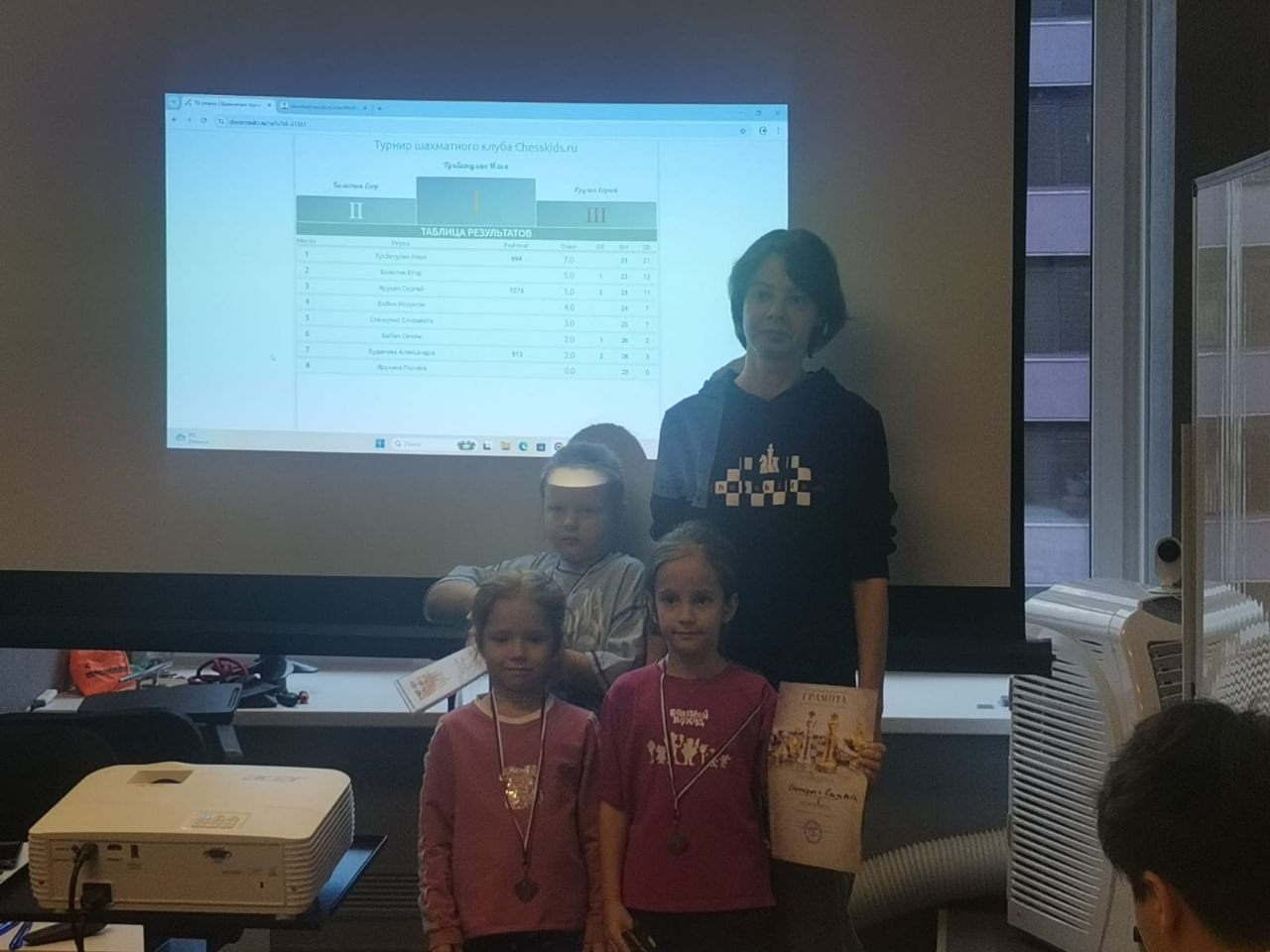 Небольшой круговой турнир провели 6го декабря в клубе Chesskids.ru на Смольной. Абсолютным чемпионом стал Илья Тухбатуллин, не потеряв ни одного очка, второе место взял Болотин Егор (сыграв свой первый официальный турнир) и Ярухин Сергей пока 3-й после долгого перерыва в шахматах. Девочки отлично выступили (1. Станкунас Елизавета, 2. Буданова Александра и 3. Ярухина Полина). Не хватило немного до призовых мест Бабину Илариону и Семену. Обсчет рейтинга ФШР по ссылке https://ratings.ruchess.ru/tournaments/226580